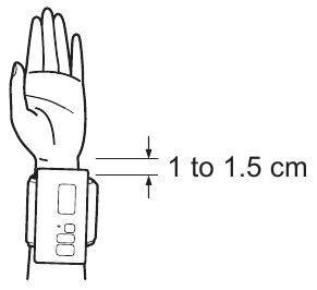 ![]() | Indică poziționarea corectă a monitorului pe încheietura mâinii Circumferința măsurabilă a încheieturii mâinii |