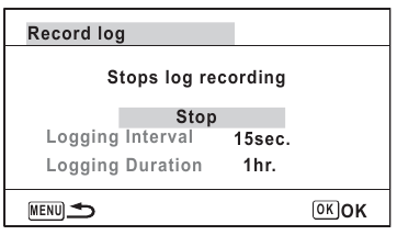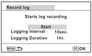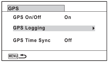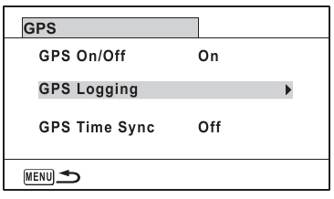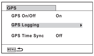 Apare ecranul [GPS Logging] (Înregistrare GPS). - Utilizați controlerul cu patru direcții (