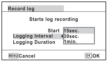 ) pentru a selecta [Logging Interval] (Interval de înregistrare), și apăsați controlerul cu patru direcții (