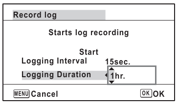 ) pentru a selecta [Logging Duration] (Durată de înregistrare), și apăsați controlerul cu patru direcții (