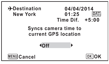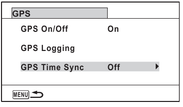 ) pentru a selecta [GPS Time Sync] (Sincronizare oră GPS).