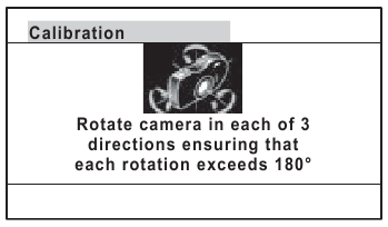 Apare ecranul [Calibration] (Calibrare). - Înfășurați cureaua în jurul încheieturii mâinii, astfel încât să nu scăpați camera, apoi rotiți camera cu cel puțin 180 de grade pe verticală, orizontală și lateral.