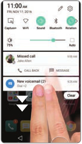 - Glisați în jos din partea de sus a oricărui ecran pentru a accesa panoul de notificări. Glisați în jos a doua oară pentru a dezvălui opțiuni suplimentare.