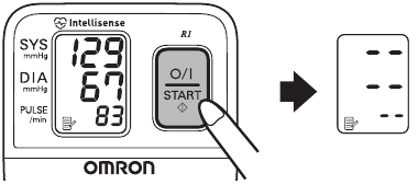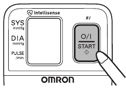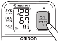 - Apăsați butonul O/I START (pornit/oprit) pentru a începe măsurarea. Manșeta de încheietură va începe să se umfle automat după ce alimentarea este pornită.