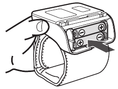 Potriviți unitatea pe încheietura mâinii drepte așa cum se arată.