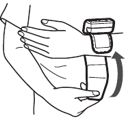 - Așezați manșeta de încheietură peste încheietura mâinii stângi, cu degetul mare stâng orientat în sus.