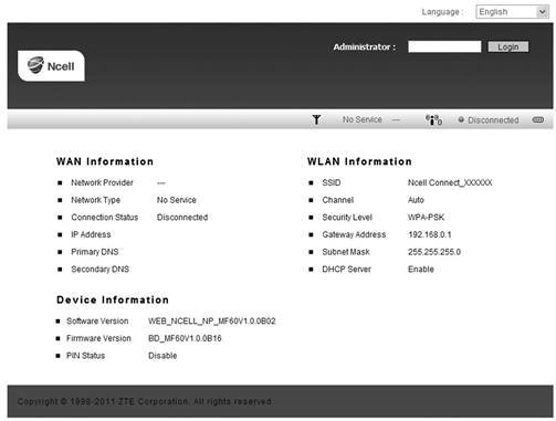 Vizualizați informațiile despre WAN, WLAN și Dispozitiv. Introduceți parola implicită sensibilă la majuscule "admin" și apoi faceți clic pe Login pentru a accesa pagina de configurare WebGUI.