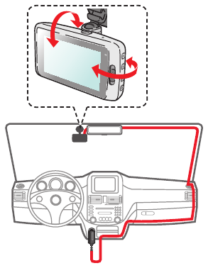 Asigurați-vă că mașina dumneavoastră este parcată pe o suprafață plană. Urmați instrucțiunile pentru a monta în siguranță camera de bord într-un vehicul.