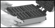 - Introduceți o placă pe rând. Plăci pentru vafe: Fiecare placă este concepută pentru a se potrivi fie în carcasa superioară, fie în carcasa inferioară a aparatului de vafe.