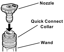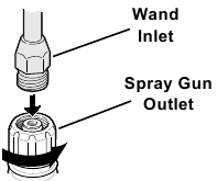 - Porniți alimentarea cu apă, scoateți duza, îndreptați bagheta într-o direcție sigură și mențineți apăsat declanșatorul până când tot aerul este eliberat din sistem, timp de cel puțin 30 de secunde. Apoi eliberați declanșatorul, blocați-l în poziția de siguranță și înlocuiți duza înainte de a porni motorul.