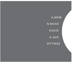 - Rotiți roata pentru a selecta A.MEM, N.MUSIC sau CD.