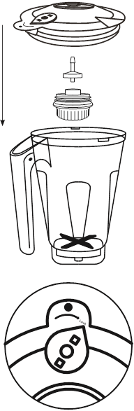 Lamele sunt ascuțite. Manipulați blenderul cu grijă. Nu manipulați lamele.- Utilizați întotdeauna blenderul cu capacul și vasul corect așezate. Blenderul nu va funcționa dacă capacul nu este fixat ferm și punctul nu este aliniat cu mânerul.