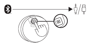 Conectivitatea implicită este Bluetooth® Pentru a reda prin conectivitate USB, apăsați butonul de intrare cu fir de pe spatele cadranului (The default connectivity is Bluetooth® To play through USB connectivity, press the wired input button on the back of the dial)