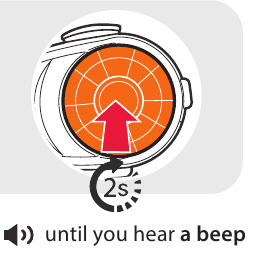 Sau, apăsați și mențineți apăsat Jog Dial (butonul rotativ) și Phone Button (butonul telefon) pentru încă 3 secunde când căștile se pornesc. Veți auzi un bip triplu și un prompt vocal.