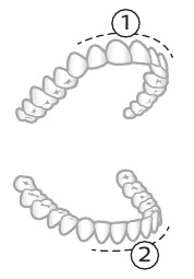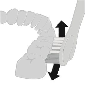- Pentru a curăța suprafețele interioare ale dinților frontali, înclinați mânerul periei semi-vertical și faceți mai multe mișcări verticale suprapuse de periere pe fiecare dinte.