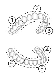 | Cum să vă periați | Clean: Periați fiecare segment timp de 20 de secunde![]() Deep Clean: Periați fiecare segment timp de 30 de secunde | Periați fiecare segment timp de 20 de secunde,![]() apoi periați segmentele 1 și 2 timp de 20 de secunde fiecare. | Periați fiecare segment timp de 30 de secunde,![]() apoi periați segmentele 1, 2, 3 și 4 timp de 20 de secunde fiecare. | ||