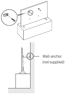 - Dacă doriți să instalați un kit de montare pe perete care se atașează de perete folosind doar două șuruburi superioare, asigurați-vă că utilizați un kit de montare pe perete Samsung care acceptă acest tip de instalare. (Este posibil să nu puteți achiziționa acest tip de kit de montare pe perete, în funcție de zona geografică.)