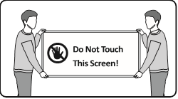 Ecranele pot fi deteriorate de presiunea directă atunci când sunt manevrate incorect. Vă recomandăm să ridicați televizorul de margini, așa cum se arată. Pentru mai multe informații despre manevrare, consultați Ghidul de instalare rapidă care a venit cu acest produs.