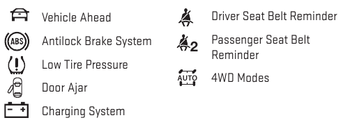 Presiune scăzută în pneuri de pe panoul de instrumente se aprinde atunci când unul sau mai multe dintre pneurile vehiculului sunt semnificativ dezumflate. Umpleți pneurile la presiunile corecte indicate pe eticheta cu informații despre pneuri și încărcare, situată sub zăvorul ușii șoferului. Presiunile curente ale pneurilor pot fi vizualizate pe centrul de informații pentru șofer.
