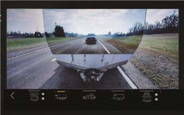 Vizualizare remorcă transparentă pentru o vizualizare din spatele remorcii. Compatibil cu majoritatea remorcilor de tip box convenționale*; necesită o cameră accesoriu