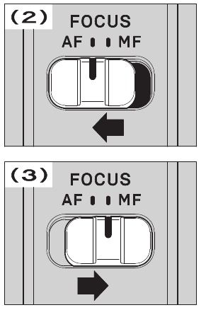 Pentru funcționarea focalizării automate, setați comutatorul modului de focalizare de pe obiectiv în poziția "AF" (fig.2). Dacă doriți să focalizați manual, setați comutatorul modului de focalizare de pe obiectiv în poziția "MF" (fig.3). Puteți regla focalizarea rotind inelul de focalizare.