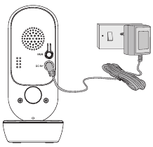 - Conectați mufa mică a adaptorului de alimentare la unitatea parentală și celălalt capăt la rețeaua electrică. Utilizați numai adaptorul inclus (5VDC/1.0A).