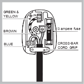 Dacă se utilizează un ștecher de 13 amperi (BS 1363), acesta trebuie să fie echipat cu o siguranță de 13 amperi, fie în ștecher, fie în adaptor, fie la tabloul de distribuție.
