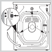 - Îndepărtați cele 3 șuruburi de protecție (folosite în timpul transportului) și șaiba de cauciuc cu distanțierul corespunzător, situate pe partea din spate a aparatului (vezi figura).