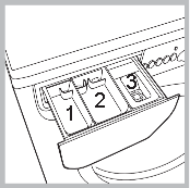 compartimentul 2: Detergent pentru ciclul de spălare (pudră sau lichid)