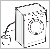 - asigurați-vă că nivelul apei din interiorul mașinii este mai mic decât deschiderea ușii; dacă nu este, îndepărtați excesul de apă folosind furtunul de scurgere, colectându-l într-o găleată, așa cum se indică în figură.