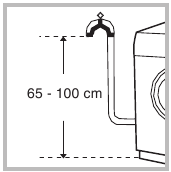 Conectați furtunul de scurgere, fără a-l îndoi, la un canal de scurgere sau la o scurgere de perete situată între 65 și 100 cm de podea;