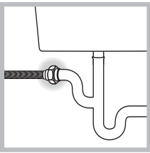 Furtunul de scurgere poate fi conectat la un sifon sub chiuvetă. Înainte de a conecta furtunul de scurgere de la mașină, asigurați-vă că orice obturatoare sau capete detașabile au fost scoase de pe racord.