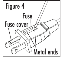 - Așezați ștecherul pe o suprafață solidă și plană. Introduceți o siguranță nouă de 5 Amperi, 125 Volți în compartimentul siguranței și utilizați o șurubelniță mică pentru a fixa capetele metalice ale siguranței în compartiment.