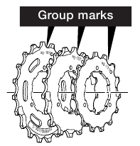 - Asigurați-vă întotdeauna că utilizați setul de pinioane care poartă aceleași marcaje de grup. Nu utilizați niciodată în combinație cu un pinion care poartă o marcă de grup diferită.