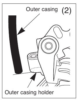 Distanța dintre opritorul exterior și suportul carcasei exterioare al schimbătorului spate se poate modifica atunci când suspensia spate se mișcă, așa că determinați lungimea carcasei exterioare în punctul în care această lungime este la maxim.