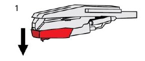 - Trageți ușor în jos marginea frontală a acului.