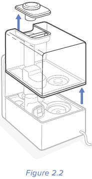 - Scoateți rezervorul de apă de pe bază înainte de a muta umidificatorul.