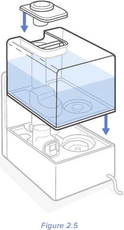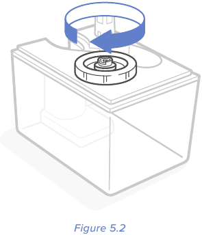 - Răsuciți și fixați bine capacul pe rezervorul de apă. [Figura 5.2]