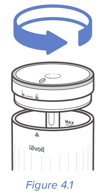 - Scoateți capacul rezervorului de apă rotindu-l în sens invers acelor de ceasornic. [Figura 4.1]