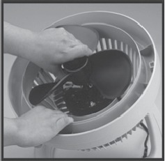 - Ștergeți elicea cu o cârpă umedă. Dacă ventilatorul dumneavoastră este utilizat într-un mediu gras, cum ar fi o bucătărie, poate fi necesar un săpun delicat sau un detergent de uz casnic obișnuit. Nu utilizați solvenți. Nu puneți elicea în mașina de spălat vase. Căldura excesivă poate distorsiona plasticul.