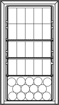 Acest centru de băuturi are o capacitate maximă de 117, doze de 355 ml. Pentru a atinge capacitatea maximă, va fi necesar să scoateți raftul superior.