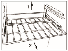 Pentru a înlocui raftul, asigurați-vă că se sprijină bine pe suporturile de sprijin și apoi împingeți spre interior până când raftul se blochează în poziție.