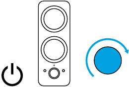 - Măriți (sau micșorați) volumul difuzoarelor rotind butonul de control al volumului în sensul acelor de ceasornic (sau în sens invers acelor de ceasornic) pe difuzorul din dreapta.