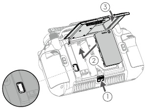 - Butonul de eliberare a bateriei
