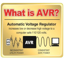 - AVR (Reglare automată a tensiunii): Această pictogramă apare ori de câte ori UPS-ul dumneavoastră corectează automat tensiunea scăzută a liniei CA fără a utiliza energia bateriei. Aceasta este o operațiune normală, automată a UPS-ului dumneavoastră și nu este necesară nicio acțiune din partea dumneavoastră.