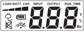 LCD-ul afișează toate informațiile UPS cu pictograme și mesaje. - Indicator de pornire