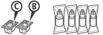 - Introduceți cartușul C (color) în partea stângă și cartușul B (negru) în partea dreaptă.