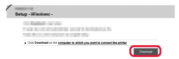 Procedurile pentru Windows sunt prezentate mai jos. Dacă utilizați un computer cu un sistem de operare diferit de Windows, efectuați configurarea conform instrucțiunilor de pe ecran. - Faceți clic pe Download (Descărcare) și descărcați fișierul de configurare.