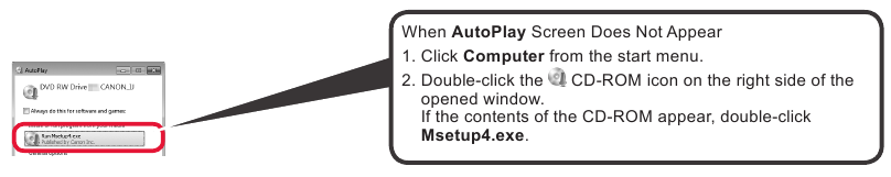 ![Canon - Pixma G1110 Series - Using Setup CD-ROM (Windows Only) Utilizarea CD-ROM-ului de instalare (numai Windows)]()