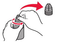 - Țineți recipientul cu cerneală în poziție verticală și scoateți capacul recipientului.
